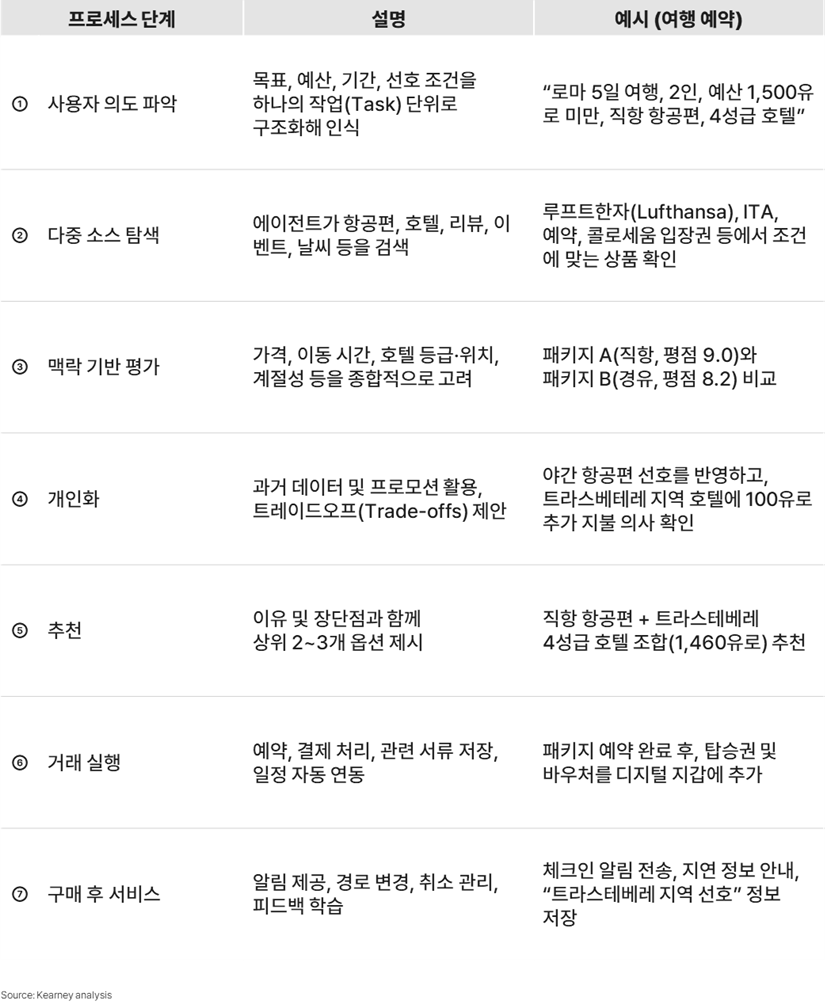 AI는 사람들이 무엇을 사는지에 영향을 주는 수준을 넘어, 거래 자체를 직접 실행하는 단계로 이동하고 있다. 예를 들어 OpenAI의 Agent 시스템은 로스트 디너에 필요한 모든 재료를 자동으로 슈퍼마켓 장바구니에 담을 수 있다.
