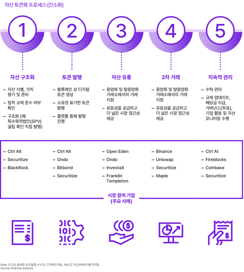 토큰화가 활성화되기 위해서는, 무엇보다 먼저 시장 환경이 활성화되어야 한다. 명확한 규제와 건전한 기술을 넘어, 구조화 및 발행부터 유통, 2차 거래, 지속적 관리에 이르는 자산의 전체 생애 주기를 지원하는 인프라가 필요하다. 현재 많은 프로젝트가 시범 운영 단계에 머물러 있는 이유는 유통 채널이나 2차 거래소 등의 구성 요소 중 하나 이상이 누락되었거나 미흡하기 때문이다. 견고한 인프라 없이는 자산 순환, 유동성 확보, 투자자 접근, 가격 발견이 어려워져, 결과적으로 시장 효율성과 도입 속도가 둔화될 수밖에 없다.