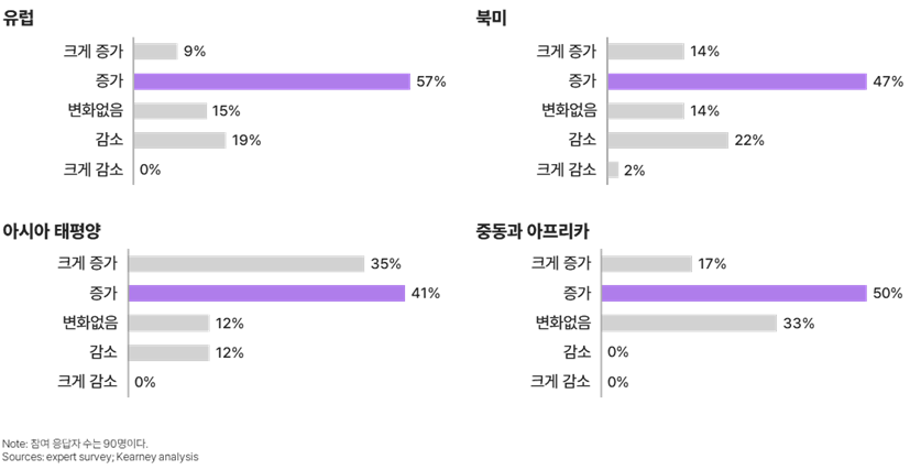 결국, 낙관적 전망이 우세하다. Kearney의 조사에 따르면, 전 세계 화학산업 경영진의 60% 이상이 ‘2025년 M&A 활동이 2024년 대비 증가 또는 크게 증가할 것’이라고 응답했다(그림 3 참조). 이는 시장의 신뢰가 회복되고 있으며, 화학산업이 새로운 M&A 성장 사이클의 초입에 진입하고 있음을 보여주는 명확한 신호다.