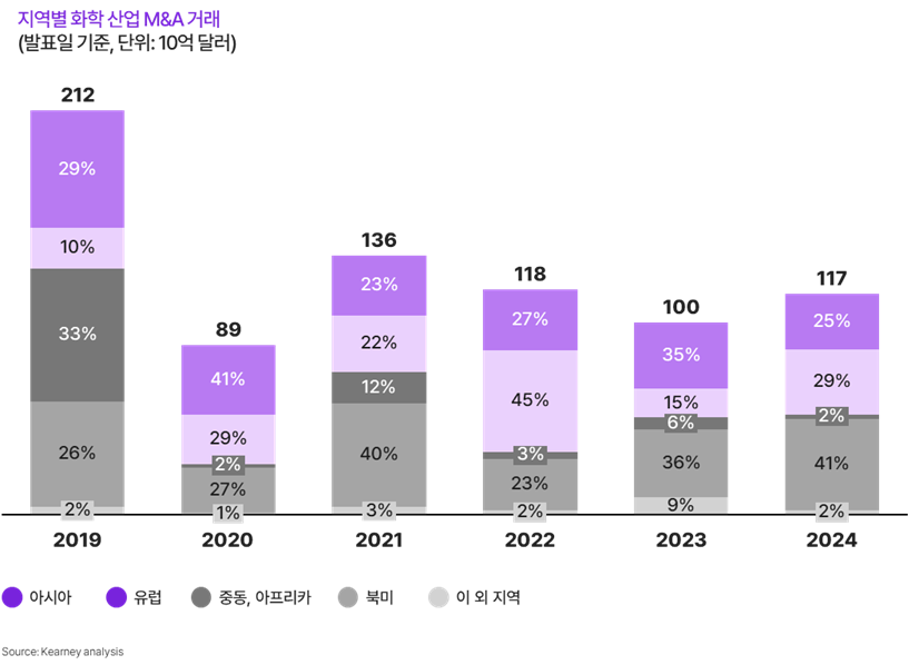 2024년 지역별 화학 산업 M&A 동향과 2025년 전망: 지역별 분화는 지속된다