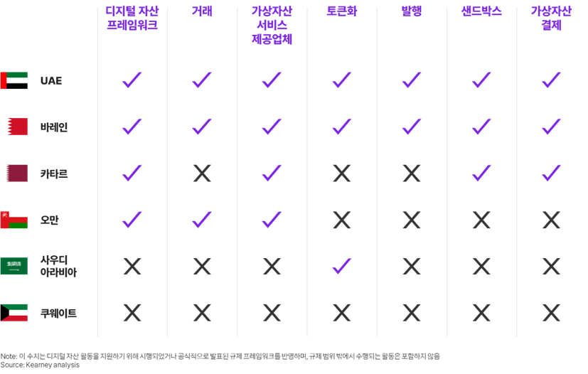▶ 그림 5. GCC 전역에서 디지털 자산 규제 프레임워크가 서로 다른 속도로 개발되고 있다.